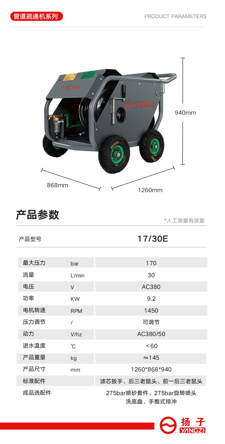 自營揚子電動高壓清洗機17/30E(已下架)